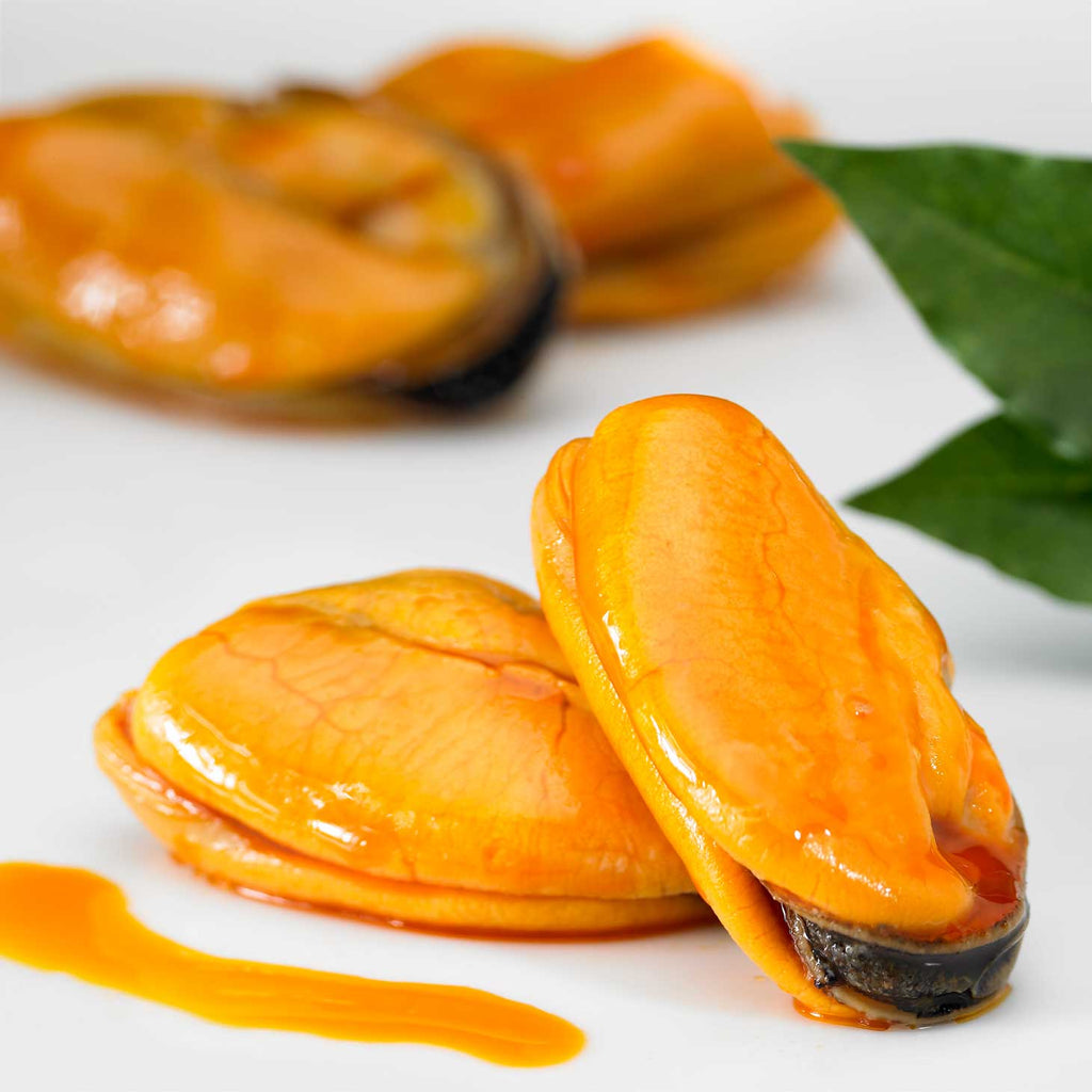 Prepared in one of Spain's most authentic sauces: escabeche, made with paprika, vinegar, oil, garlic, and bay leaf. The cooking is done with meticulous temperature control to prevent the mussel from breaking.